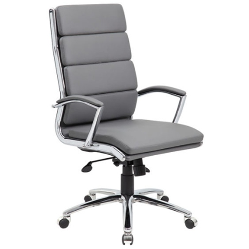 Comfort and class are inseparable with this executive high-back chair from Office Furniture Expo. We offer this seating choice because of its high-quality build and features. The CaressoftPlus chair’s amply padded seat and high back make getting through the workday more comfortable. With a metal chrome finish, the hardware on the base, fixed arms, and frame are eye-catching. You also have a paddle to operate the pneumatic gas lift seat height adjustment and another one to operate the spring tilt tension or upright lock. With a 275-pound weight capacity and 27-inch chair base, most professionals can rest easy with the support they need. This chair is available in black, white, grey, and beige.