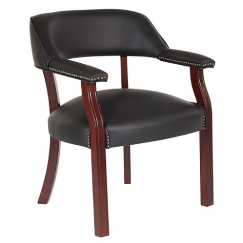 Your reception area or private office can benefit from durable and comfortable seating, and a sharp design only adds to its charm and appeal. Office Furniture Expo proudly offers this guest chair as a seating option for visitors, clients, and colleagues. The traditional design includes a thick-padded seat and back for people to relax and stay comfortable. Your arms enjoy the same level of comfort with padded armrests on each side, and the mahogany-finish wood legs come with or without casters. You can get this chair in Jamestown Oxblood vinyl or black vinyl. Get in touch with our design specialists or add this chair to your quote to receive additional information and pricing.